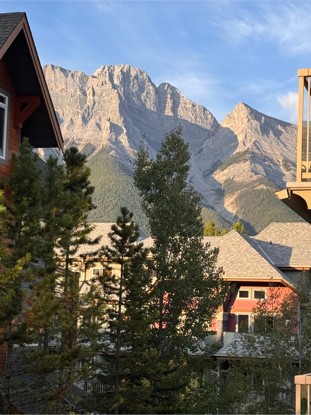 After a late-night arrival at around 2 AM, we finally woke up to our first morning in the Canadian Rockies - and what a surprise it was! Since we had reached in the dark, we had no idea what surrounded us. When I stepped out onto the balcony, I was greeted by a breathtaking view - majestic mountains all around, their peaks kissed by the early morning light. It was one of those moments that instantly fills you with gratitude and excitement for the day ahead.