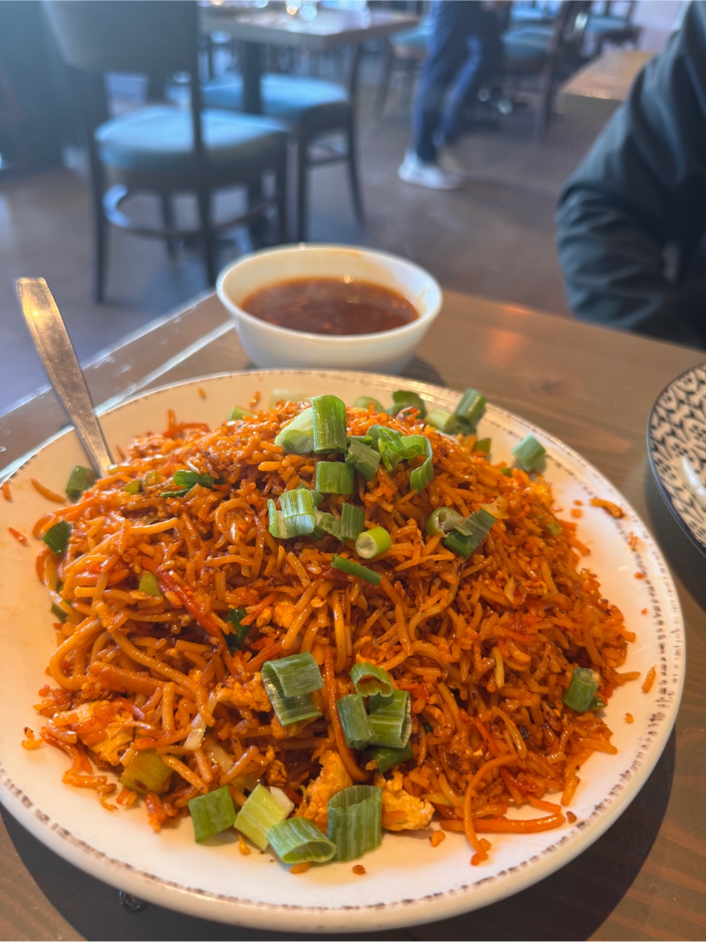 For brunch, we stopped at an amazing Indian restaurant called Mumbai Local, and oh my goodness - the food was phenomenal! We ordered dahi puri, soya chaap, and triple schezwan fried rice, and everything was bursting with flavor. It felt like a comforting taste of home right in the middle of the Rockies.