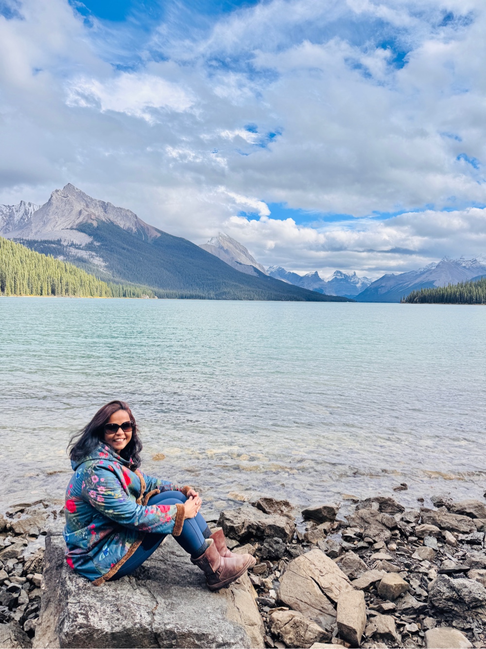 While sitting by the window, I noticed a mountain in the distance that looked exactly like Mount Kailash, with its perfect pyramid shape towering gracefully over the valley. It instantly became the highlight of my morning! I couldn’t wait to see it up close, and from the looks of it, it seemed to lie somewhere along the Icefields Parkway, which we planned to drive the next day.
