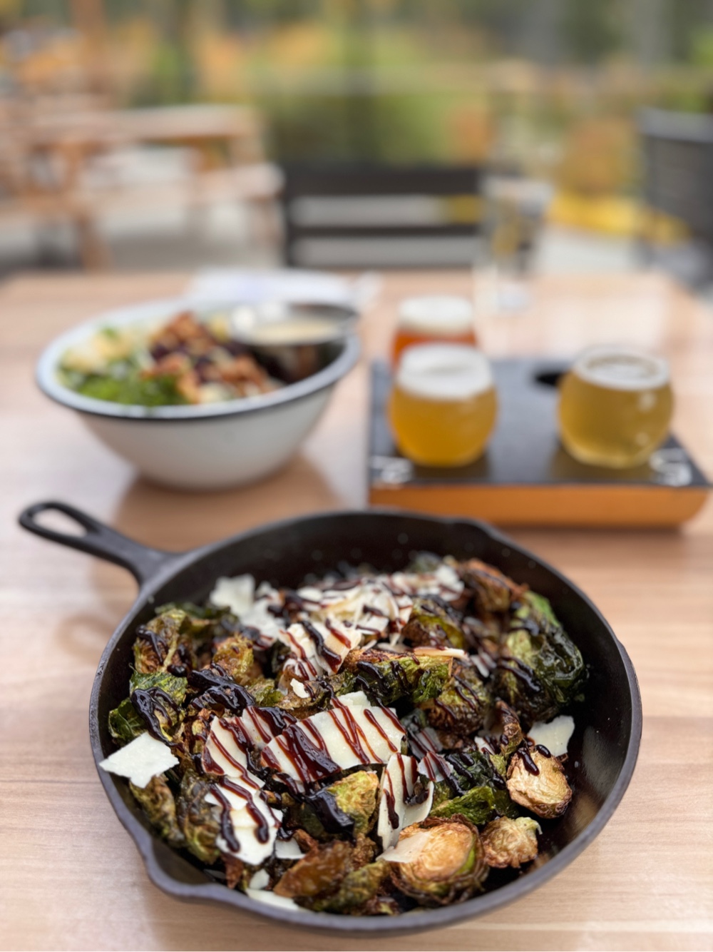 On the way back, we decided to grab dinner at a local brewery near our dome, and it was one of the best meals of the trip. The Brussels sprouts were perfectly roasted, the salad fresh and flavorful, and the craft beers — each one better than the last! Brewery-hopping has become a tradition on all our trips, and we were so happy to continue that ritual here in Jasper too.